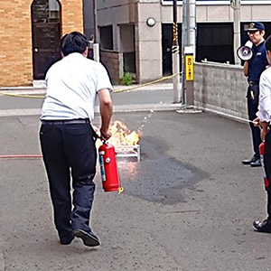 有事に備え、入居者の方々と共に防災講義、非常用機器の取扱い訓練、避難訓練、